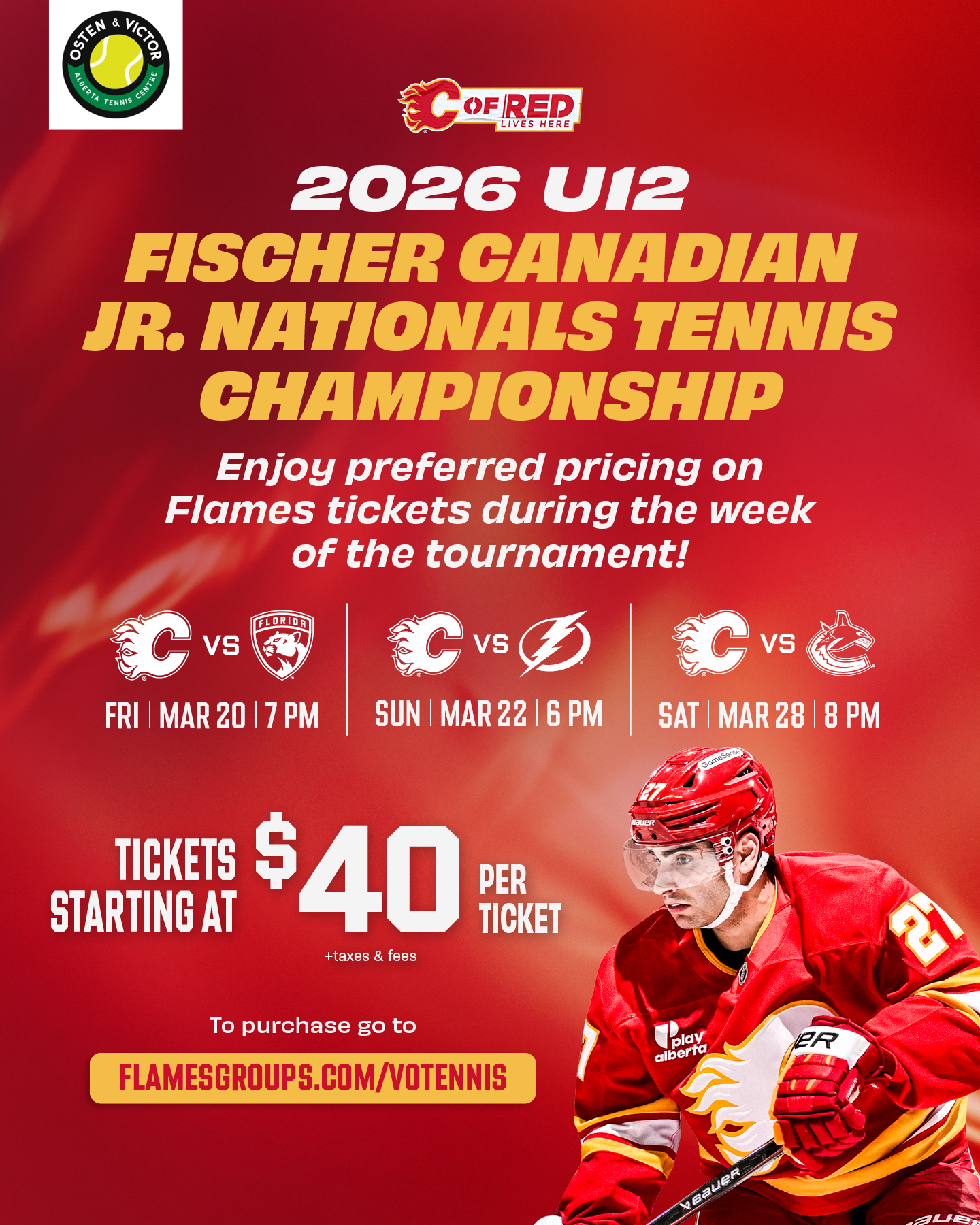 The Carriage House Calgary is the official 2026 tournament hotel. This is located 300m from the Osten & Victor Alberta Tennis Centre.